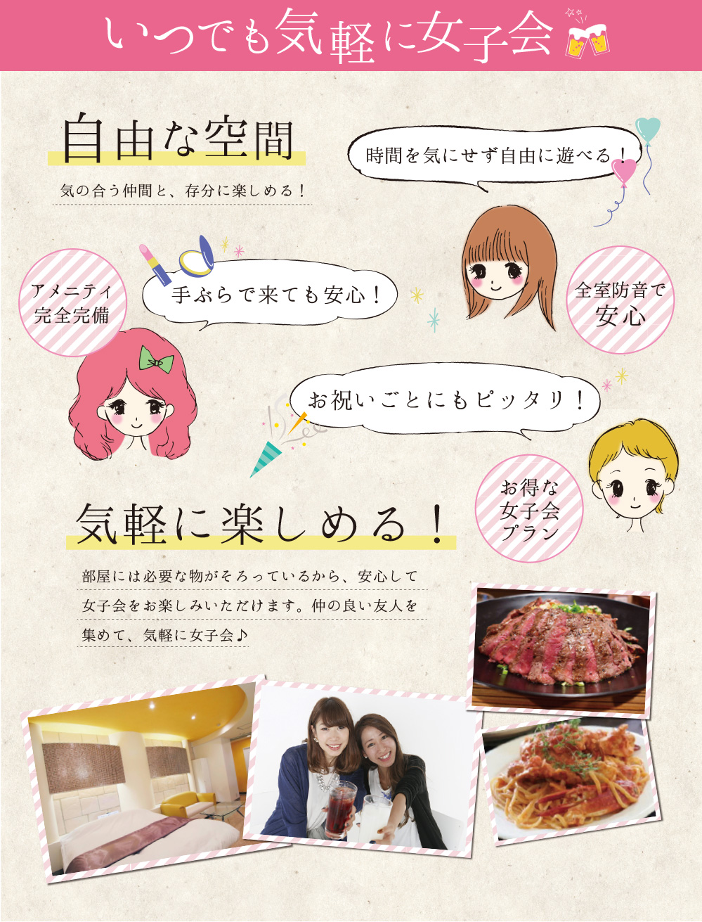フィオーネでの"ラブホ女子会"を是非ご利用下さい。