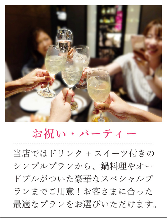 フィオーネでは女子会専用のお部屋をご用意させていただいております。