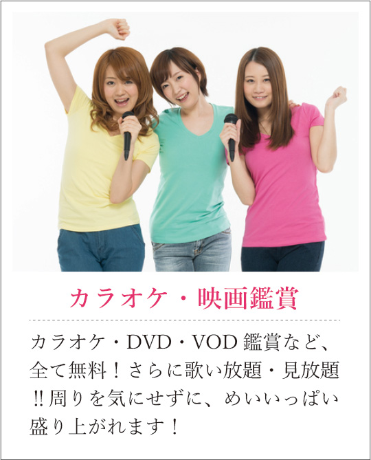 人目を気にせずおもいっきり騒げるので、歌って踊ってガンガン女子トーク!