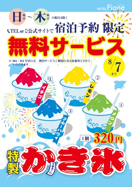 今だけの特別な「かき氷無料サービス」で、涼しいひとときをお届けします。